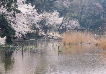 桜の三宝寺池
